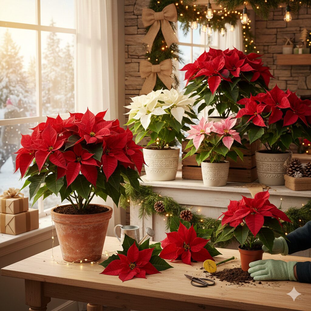 ポインセチアを育てるうえで大切なのは、次の4つのポイントです。